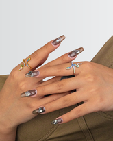 Slip on the Mystic Serpent Ring and let its enchanting coils charm your style. This playful piece wraps your finger in a sleek serpent design, adding a touch of mystery and whimsy to any outfit. Perfect for those who love a little magic and mischief in their accessories.