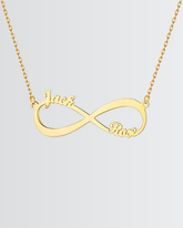 Ornez-vous de ce magnifique collier infini personnalisable avec vos noms. Fabriqué en acier inoxydable de première qualité, son design élégant le rend parfait pour toutes les occasions. Personnalisez cette pièce unique avec les noms de vos proches et faites-en votre propre. Ressentez l'amour !
