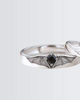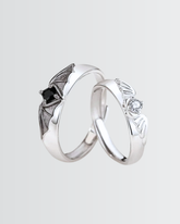 Embrace the eternal dance of opposites with these enchanting Angel Meets Bat Love Bands. Crafted from highly polished sterling silver and adorned with sparkling fine quality zircons, these rings celebrate the beautiful balance between light and darkness. Perfect for couples who appreciate a touch of celestial mischief, each band captures the playful tension of angelic grace meeting mysterious allure. A symbol of complementary souls finding harmony together.